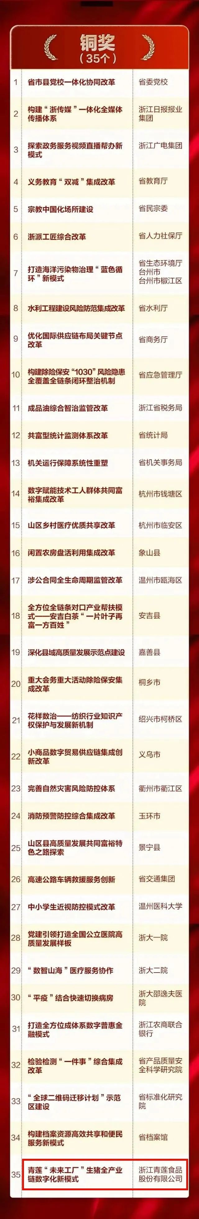 重磅!青蓮食品—膳博士榮獲浙江改革突破獎銅獎! 2023-02-01 09:20:19 浙江青蓮食品股份有限公司 瀏覽次數 2830 近日,浙江省委改革辦公布了2022年度浙江省改革突破獎名單。浙江青蓮食品股份有限公司“數智青蓮”未來工廠榮獲2022年度浙江省改革突破獎銅獎,是銅獎組中唯一的一家民營企業。20多年來,青蓮食品構建起從農場到餐桌的透明全產業鏈,在改革創新中以種業為源頭,建立起未來農場—未來工廠—產業新零售等數字化應用,真正從用戶需求出發為社會提供優質食品!此次獲得浙江改革突破獎銅獎,更是對青蓮食品數字化轉型成果的肯定和勉勵!實現黑豬專家膳博士在安全和美味雙升級上硬核突破!身為黑豬專家,膳博士服務過世博會、世乒賽、國際馬拉松比賽,連續8年為世界互聯網大會供肉,連續14年為中國極地研究中心供肉,成為杭州亞運會官方生鮮肉類產品供應商。以國家級嘉興黑豬和兩頭烏保種場作為種業基礎繁育國家級優質新品種,形成完整的黑豬商品體系為消費者帶來舌尖體驗。近年來,通過智慧養殖為傳統畜牧產業數字化轉型先行探路,以新一代信息技術為手段,重塑生豬全產業鏈生產組織方式和管理服務模式,構建“1+4+N”模型,推動全產業鏈數字化轉型。產業零售端以用戶需求為中心持續推出膳博士黑豬鮮肉鮮制系列產品提升消費體驗,滿足國人對美好生活、品質食品的向往。2022年,青蓮智慧牧場首批入選浙江省“未來農場”,“數智青蓮”未來工廠獲全省數字化改革“最佳應用”和全省數字經濟系統“最佳應用”。在全省數字化改革大會上做匯報演示,列入全省數字經濟系統地方特色應用目錄,受到央視、省級、市縣級等媒體持續關注報道。 上一條“風云浙商”許明曙:人生把一件事做好就很不容易 下一條全國唯一!膳博士·香雪白豬獲2022年度國家新品種認定!